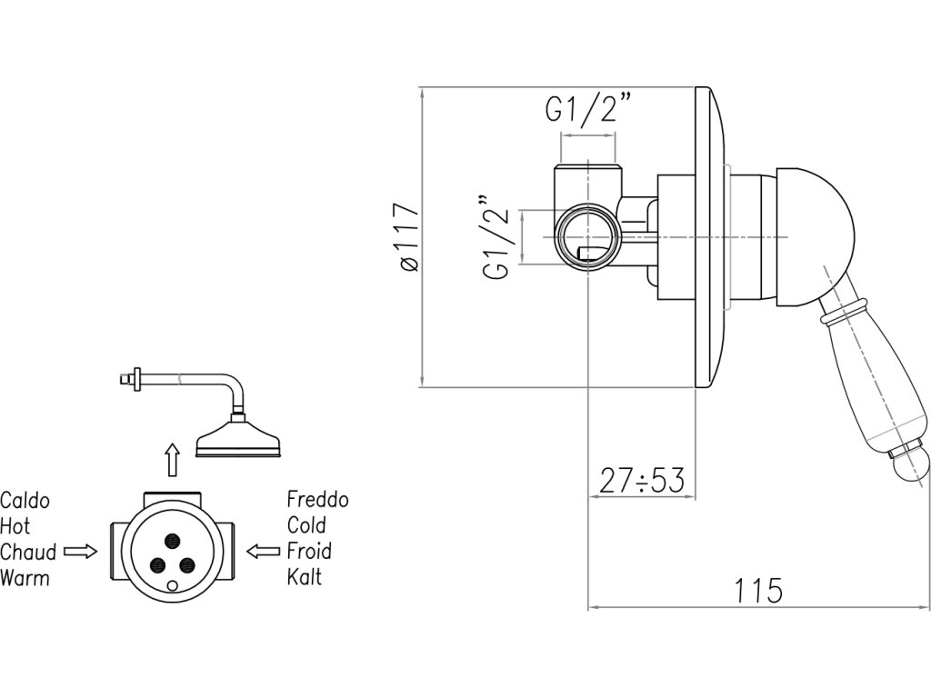 KIRKÉ WHITE podomítková sprchová baterie, 1 výstup, bílá páčka, bronz KI41BB