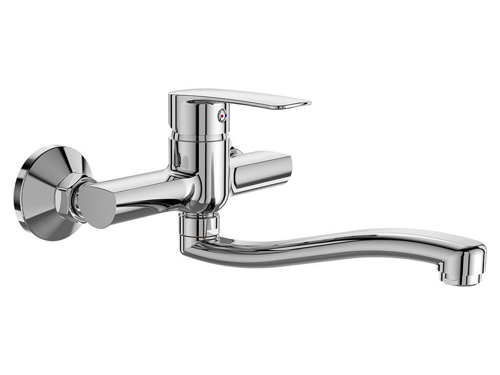 Mereo Dřezová nástěnná baterie, Sonáta, 150 mm, s ramínkem plochým vyhnutým 200 mm, chrom CB301N