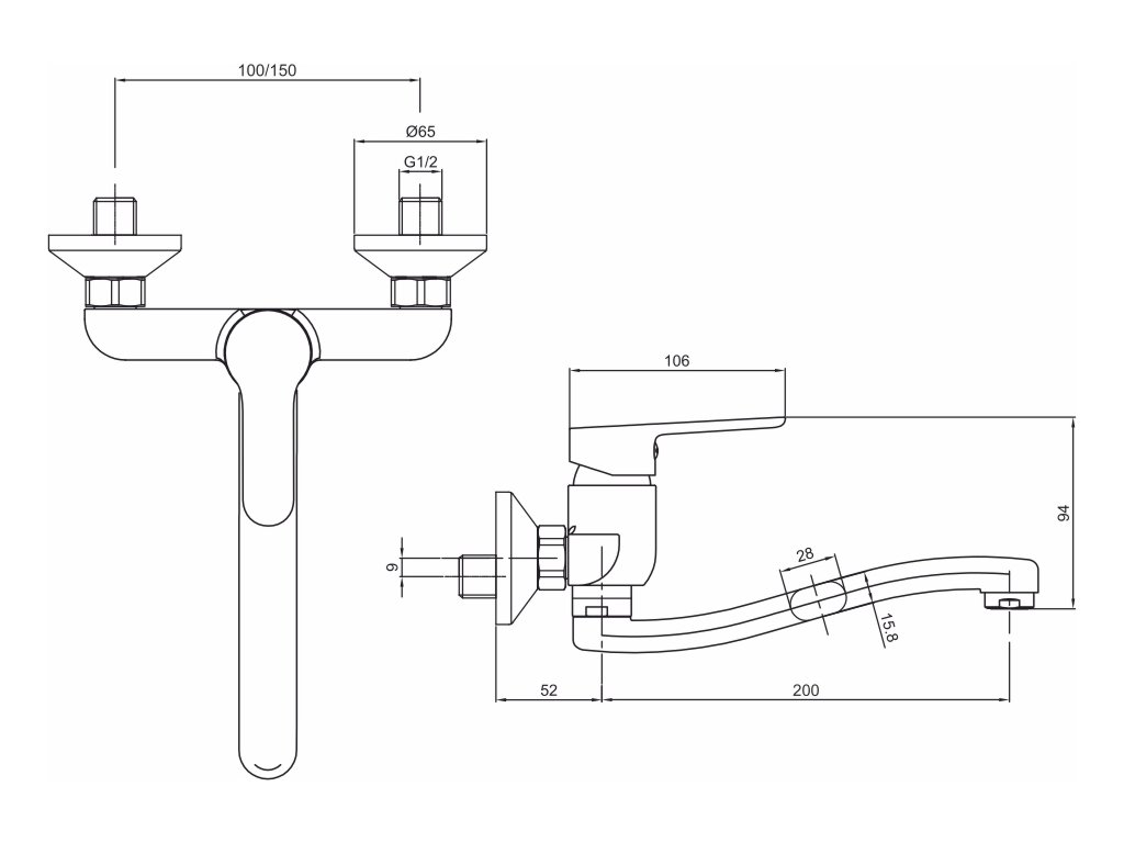 Mereo Dřezová nástěnná baterie, Zuna, 150 mm, s ramínkem plochým vyhnutým 200 mm, chrom CB301Z