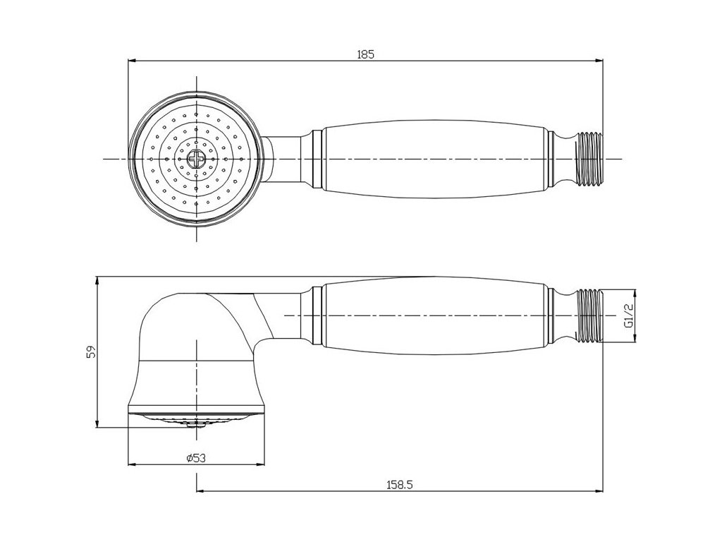 Kvalitní masivní retro sprška, s keramickou rukojetí.