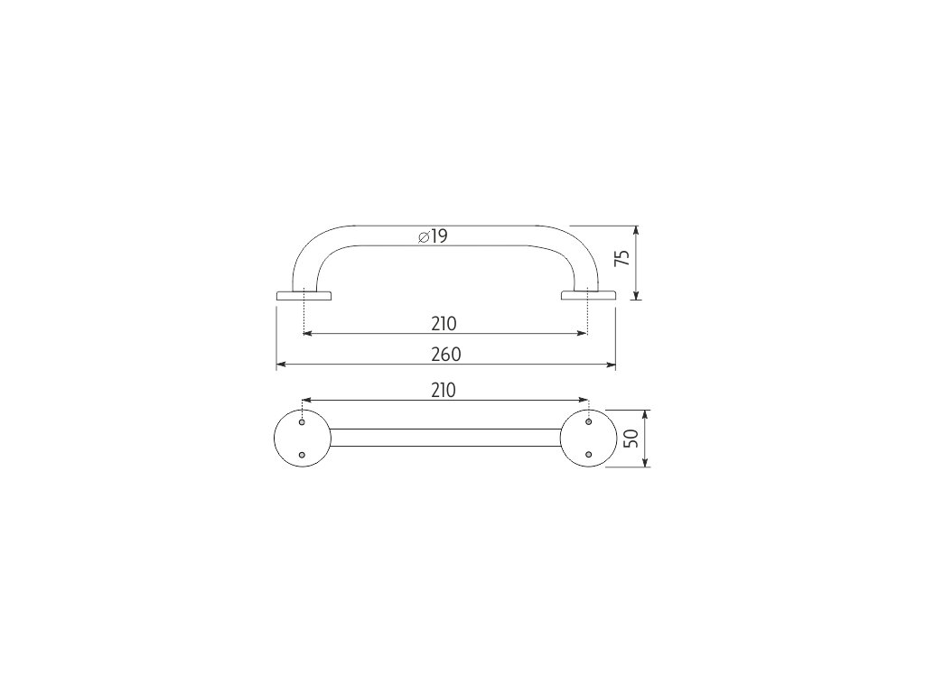 Koupelnové madlo 21 cm x 19 mm do koupelny, sprchy, pro seniory je skvělým doplňkem do koupelny. Často bývá koupelně vyčleněna jen opravdu malá plocha. A právě proto, že v této často nejmenší místnosti nebývá příliš prostoru pro estetické doplňky, měli bychom zaostřit svoji pozornost především na předměty, které plní konkrétní funkce. Řešením může být právě některý z následujících výrobků. Uchycení madla na každé straně dvěma šrouby. Vzdálenost mezi šrouby 210 mm. Rozteč mezi šrouby na jedné straně 30-36 mm.
