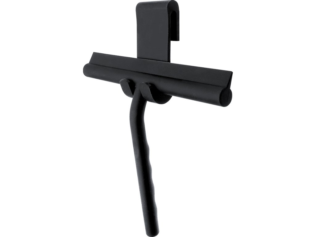 Koupelnová stěrka závěsná do sprchy černá je skvělým doplňkem do koupelny. Závěsná sprchová stěrka je určena k zavěšení do sprchového koutu. Tloušťka skla max 10 mm. Stěrka je vyrobena z kovu. Celý její povrch je obalen matným silikonem. Výhodou silikonové stěrky je její pružnost. Při neočekávaném pádu neponičí sprchovou vaničku nebo vanu. Součástí stěrky je silikonový hák pro zavěšení.