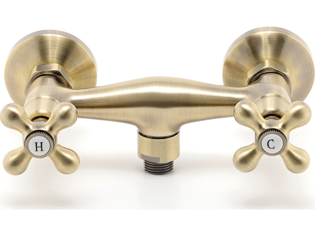 Kvalitní a odolné keramické ventily <b>s prodlouženou zárukou 5 let</b>. Prvotřídní bronzové provedení. Sprchová nástěnná baterie s roztečí 150 mm se spodním vývodem vody.