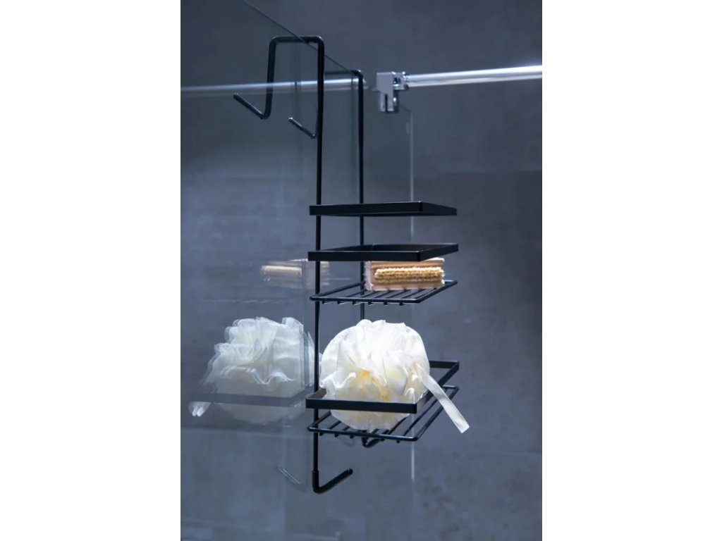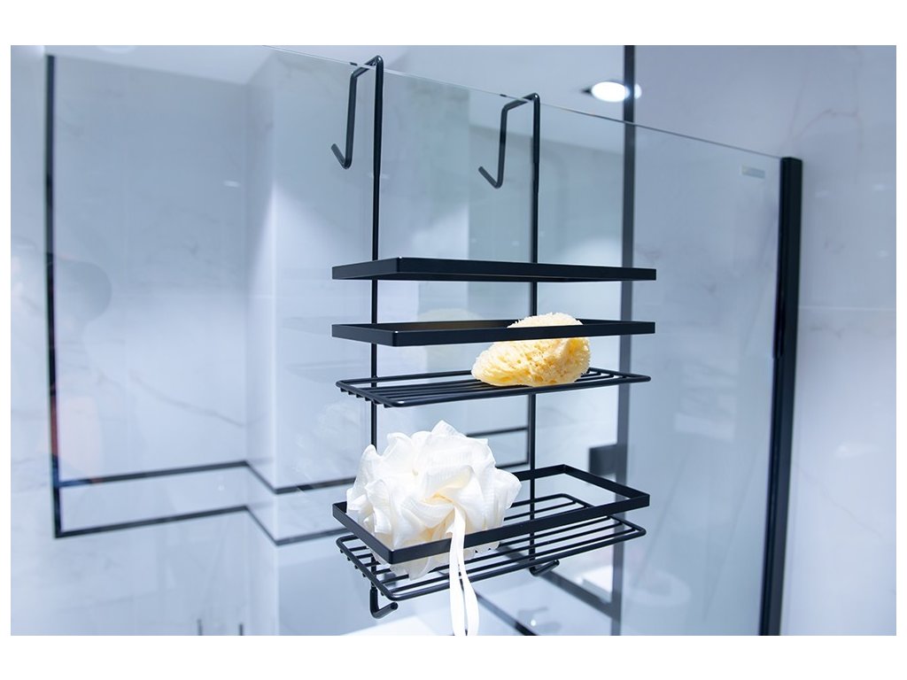 Drátěná polička s čistým elegantním designem v moderní černé barvě, která se hodí do každé moderní koupelny. Polička je určena k zavěšení například za sklo sprchového koutu. Praktický pomocník pro uspořádání vybavení Vaší koupelny. Její praktické tvary oceníte zejména ve sprchových koutech. Povrchová úprava zajišťují odolnost vůči korozi a vlhkosti.