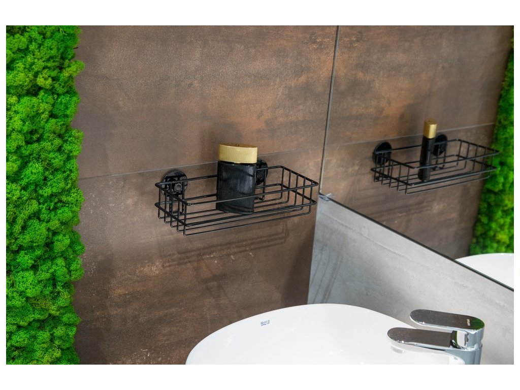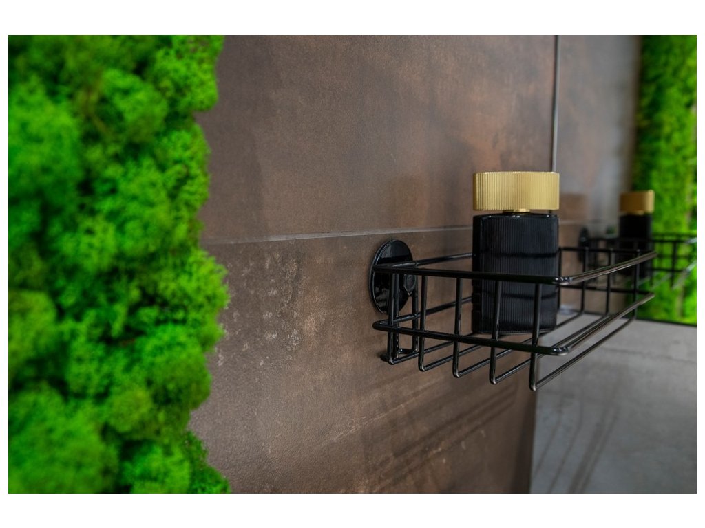 Praktická a elegantní polička na nalepení. Drátěná polička z kvalitní, černě lakované oceli. Samolepící koupelnové doplňky jsou ideálním řešením, pokud nechcete vrtat do obkladů. Velmi kvalitní lepící páska 3M přilne k různým povrchům a umožňuje snadné odstranění doplňků bez zanechání stop či poškození. Jeho maximální nosnost je 4 kg.