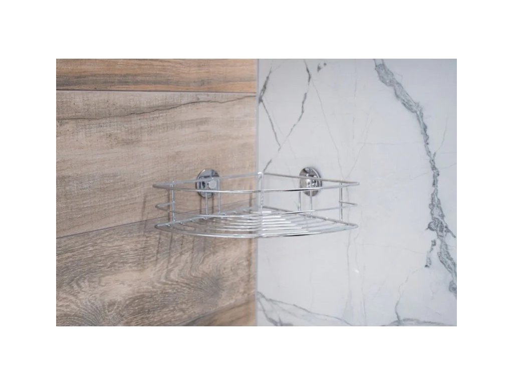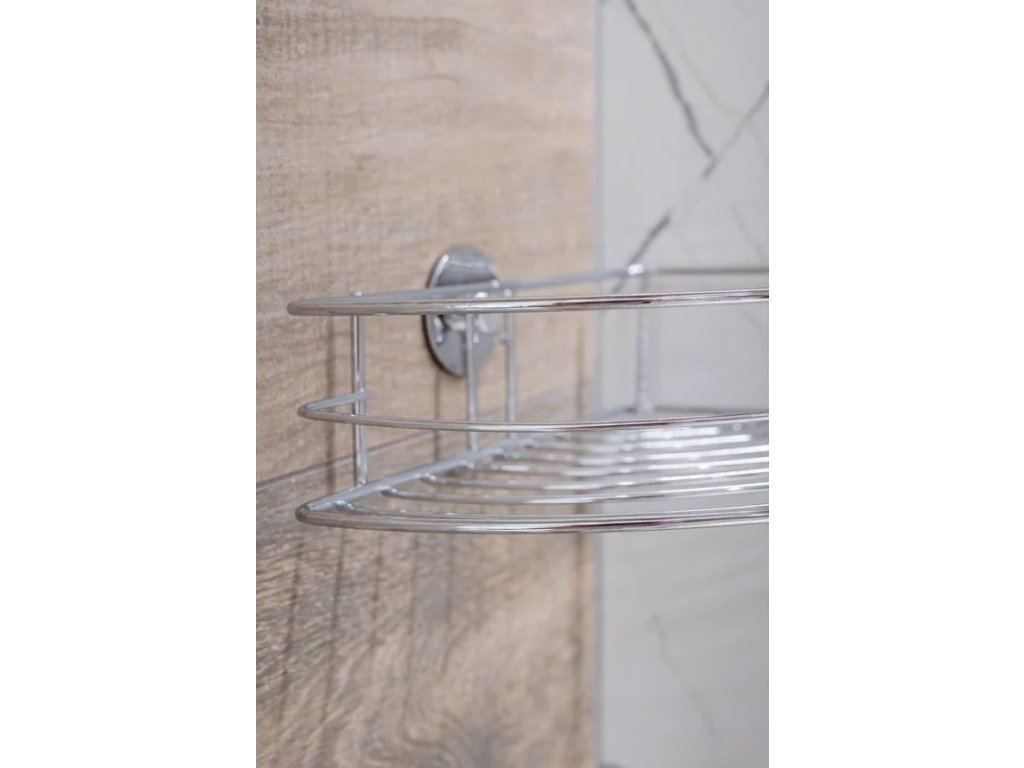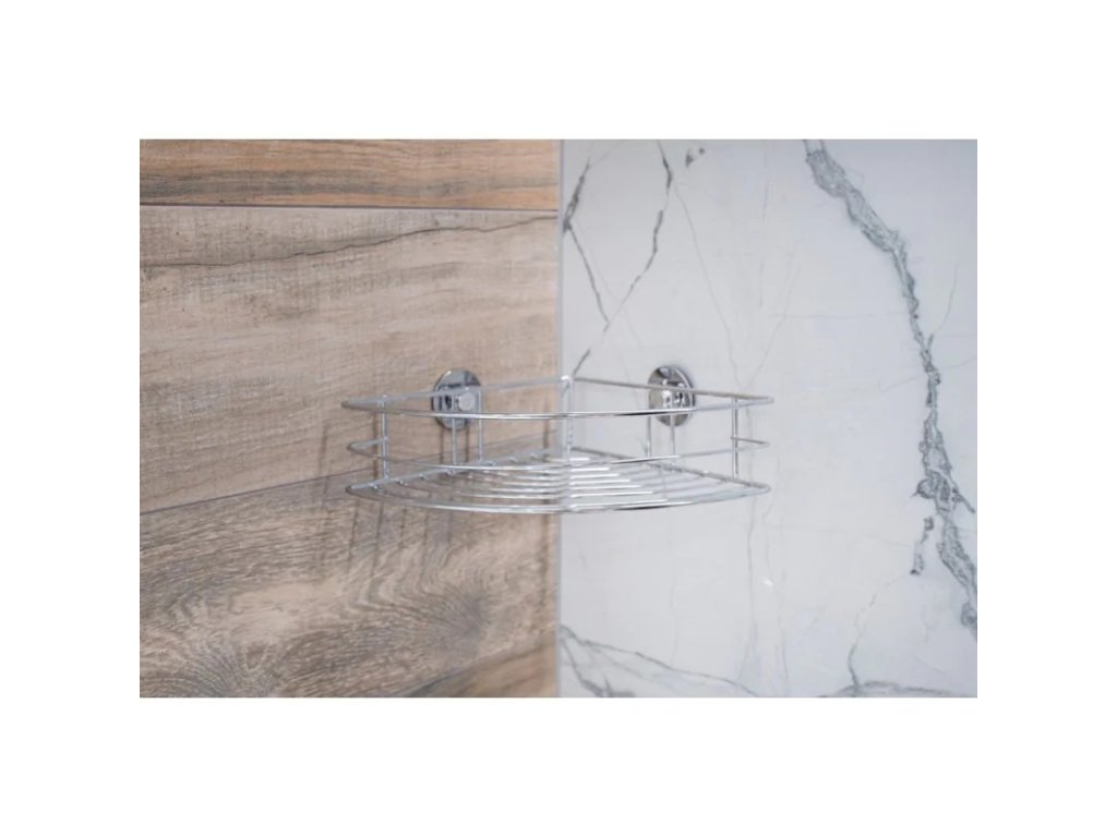 Praktická a elegantní čtvrtkruhová polička na nalepení. Samolepící koupelnové doplňky jsou ideálním řešením, pokud nechcete vrtat do obkladů. Velmi kvalitní lepící páska 3M přilne k různým povrchům a umožňuje snadné odstranění doplňků bez zanechání stop či poškození. Pochromovaná ocel a povrchová úprava pochromováním zajišťují odolnost vůči korozi a vlhkosti.
