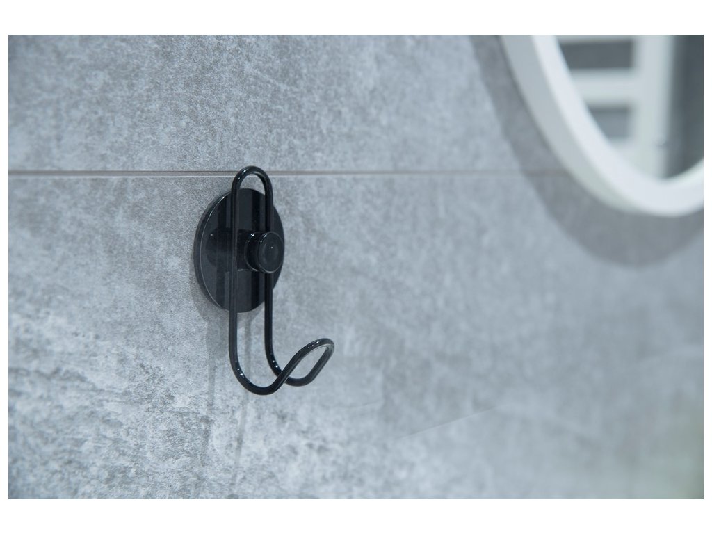 Drátěný háček z kvalitní, černě lakované oceli. Největší výhodou tohoto držáku je jednoduché nalepení pomocí 3M pásky. Jeho maximální nosnost je 4 kg.