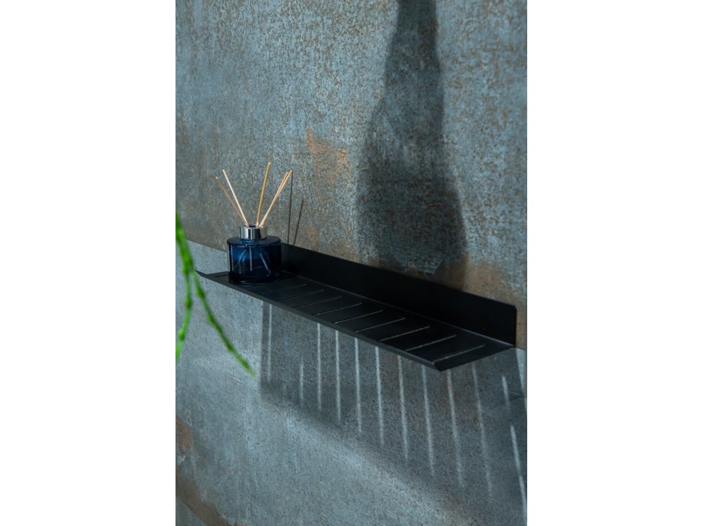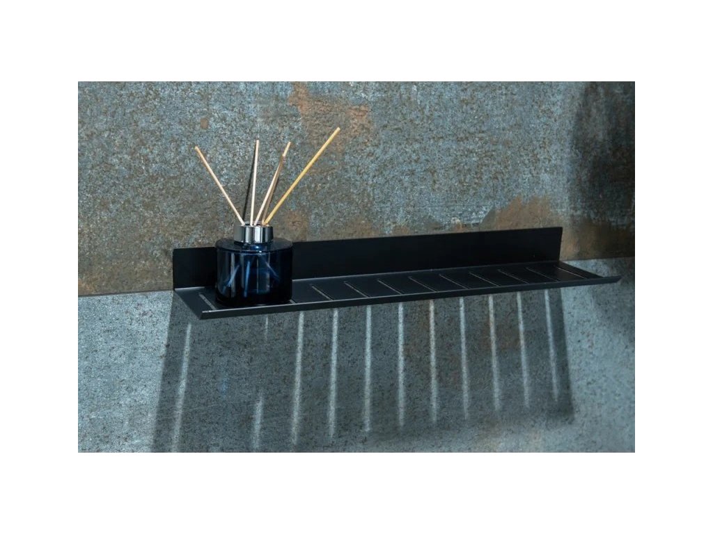 Dlouhá, jednoduchá a přitom velmi moderní koupelnová polička z černě lakovaného hliníku s lesklou povrchovou úpravou. Instalace se provádí na samolepicí pásku 3M s vysokou lepicí silou. Jeho maximální nosnost je 4 kg.