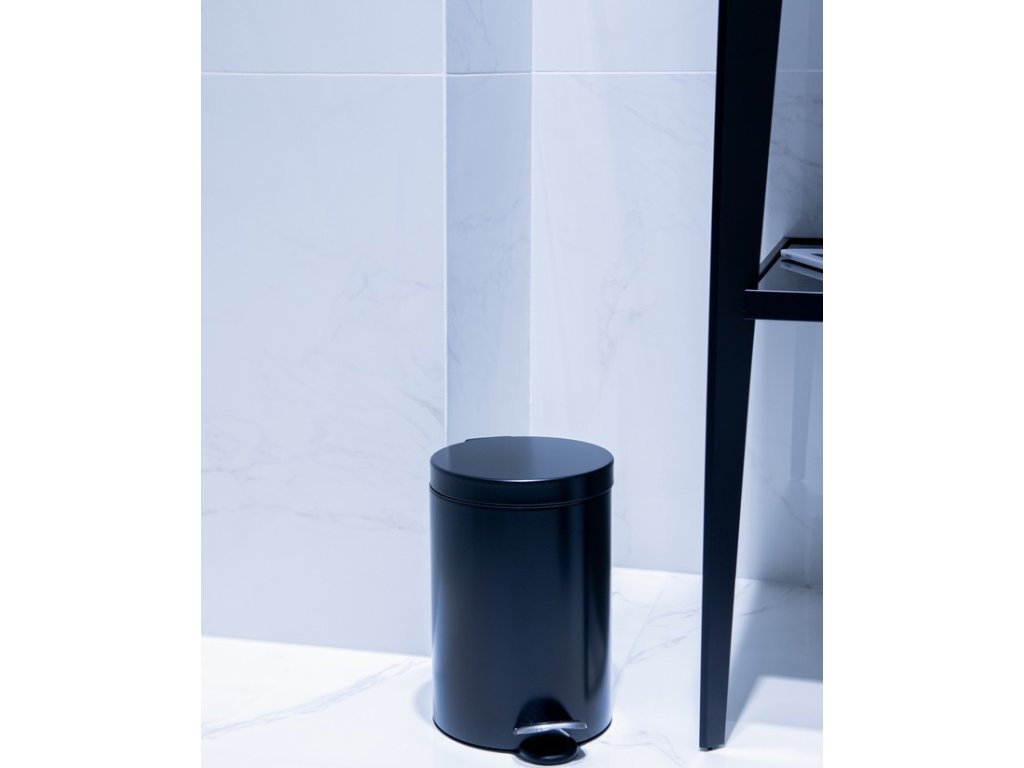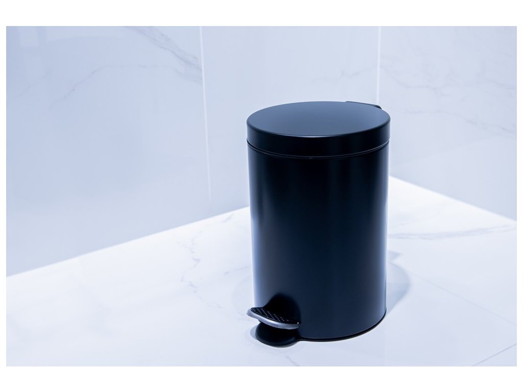 Designový kvalitní, černě lakovaný pedálový odpadkový koš s objemem 3 l je tou nejlepší volbou k černým doplňkům pro vaši koupelnu.