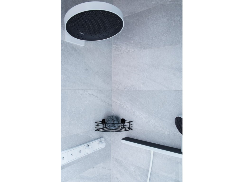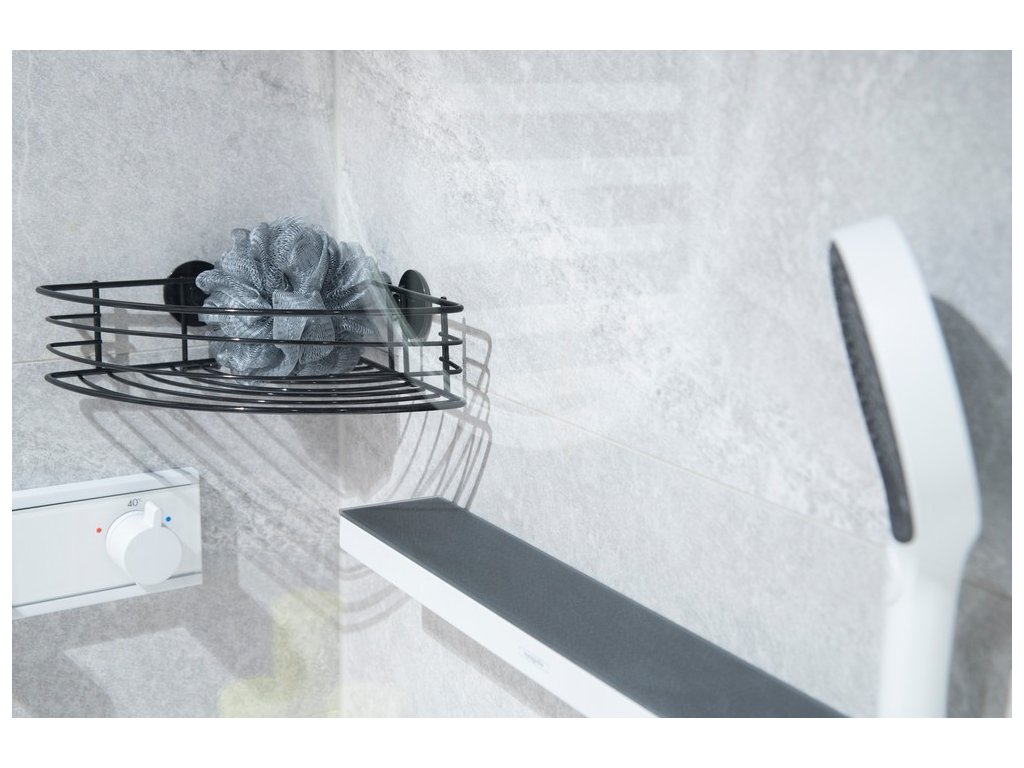 Praktická a elegantní čtvrtkruhová polička na nalepení. Drátěná polička z kvalitní, černě lakované oceli. Samolepící koupelnové doplňky jsou ideálním řešením, pokud nechcete vrtat do obkladů. Velmi kvalitní lepící páska 3M přilne k různým povrchům a umožňuje snadné odstranění doplňků bez zanechání stop či poškození. Jeho maximální nosnost je 4 kg.