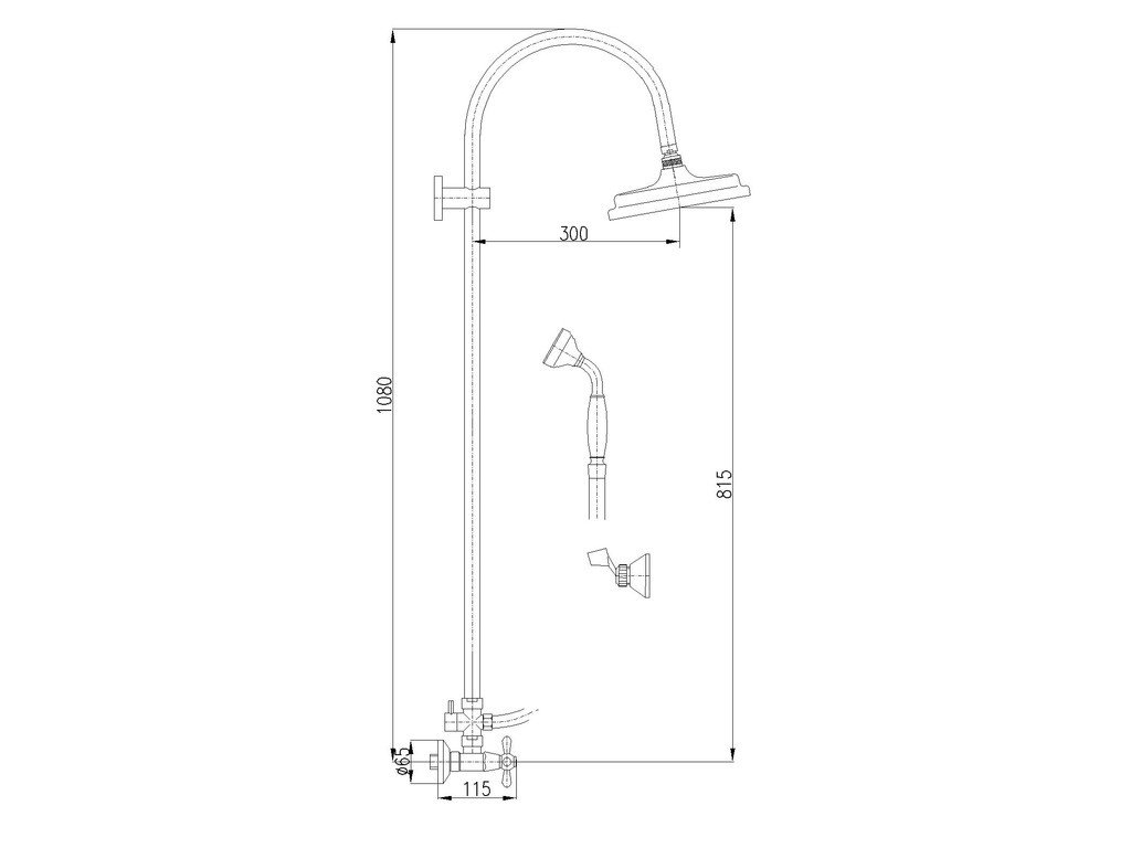 Baterie sprchová MORAVA RETRO s hlavovou a ruční sprchou se skládá z: