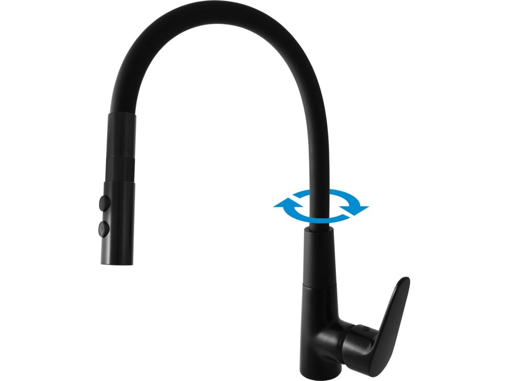 Vodovodní baterie dřezová stojánková s flexibilním otočným ramínkem se sprchou (funkce proud/sprcha).