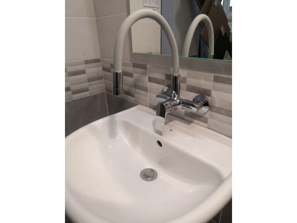 Vodovodní baterie dřezová nástěnná s flexibilním ramínkem.