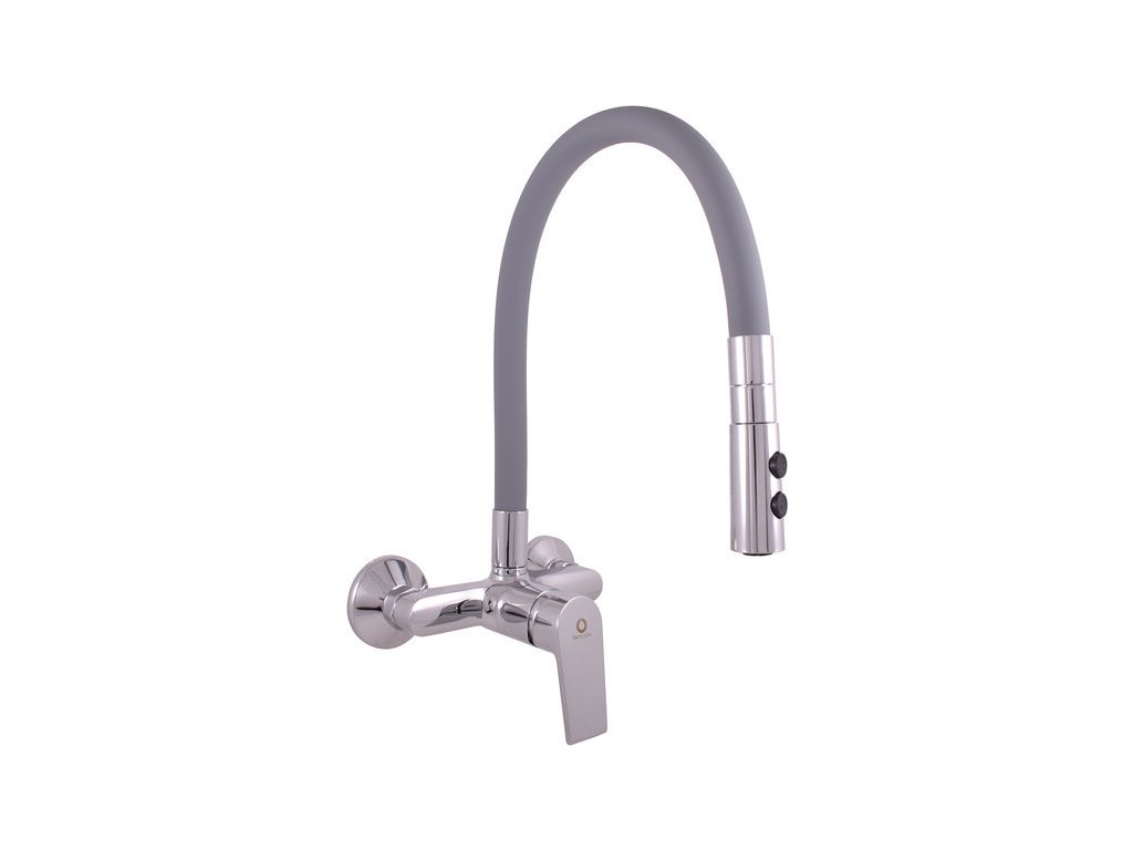 Vodovodní baterie dřezová nástěnná s flexibilním ramínkem se sprchou.