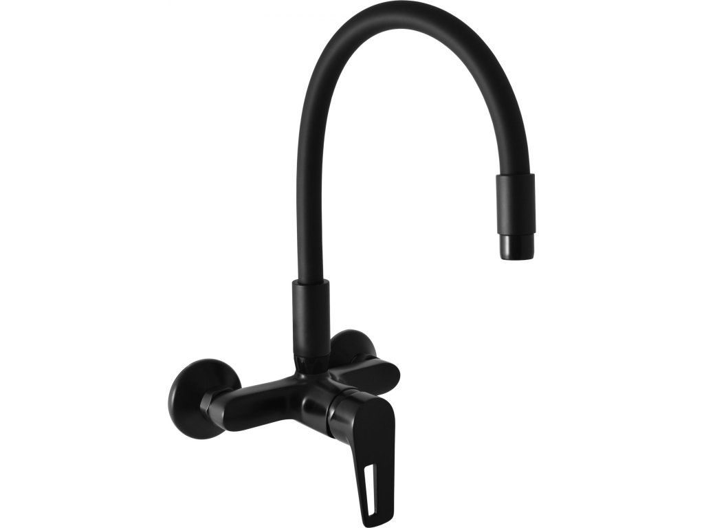 Vodovodní baterie dřezová nástěnná s flexibilním otočným ramínkem.