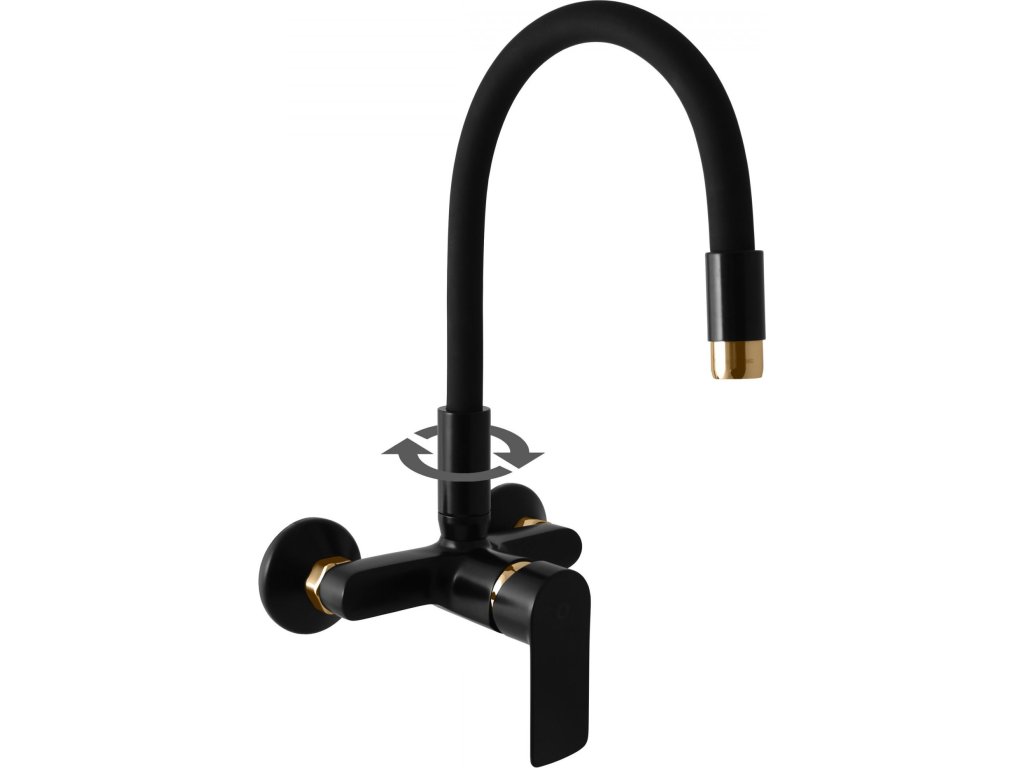 Vodovodní baterie dřezová nástěnná s flexibilním otočným ramínkem.