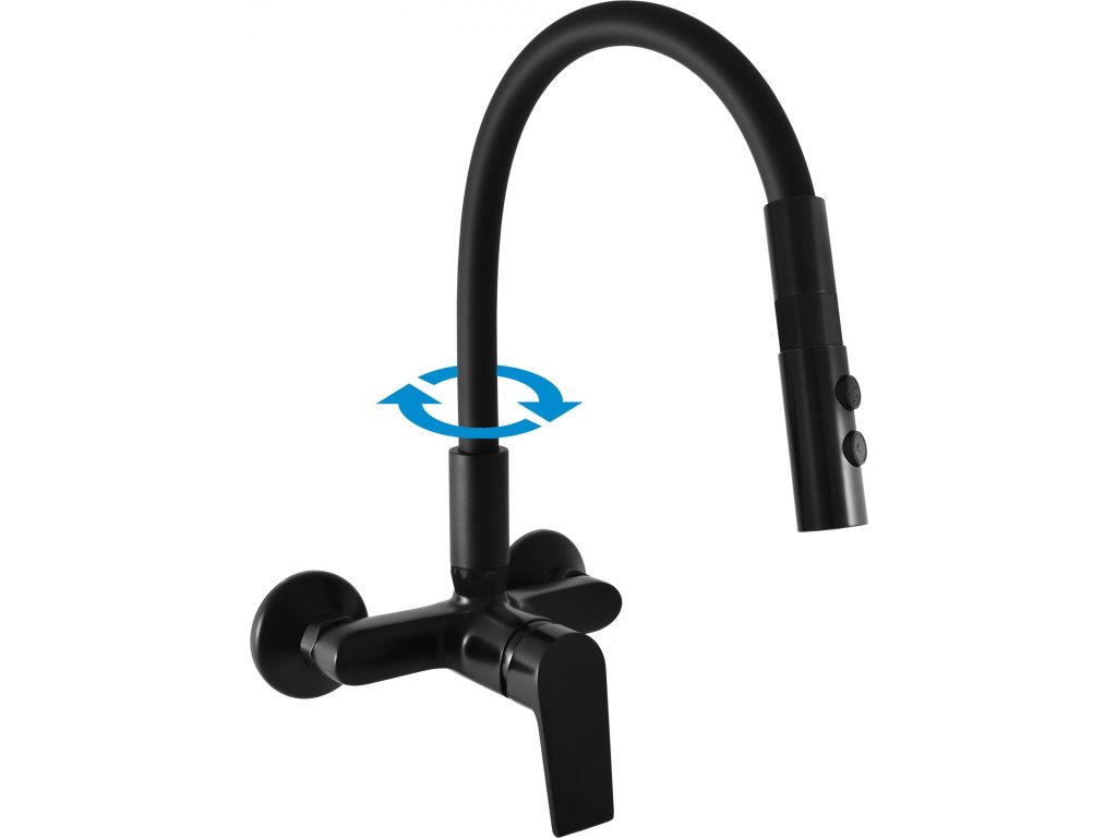 Vodovodní baterie dřezová stojánková s flexibilním otočným ramínkem se sprchou.