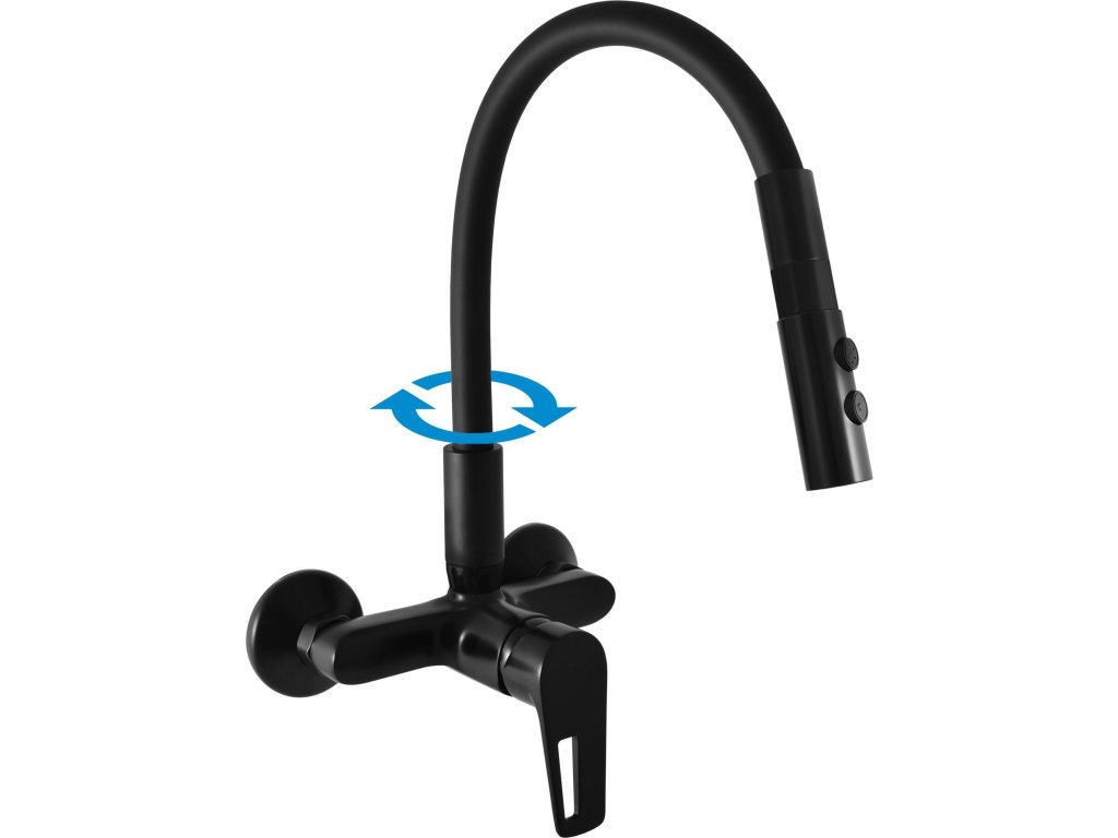 Vodovodní baterie dřezová stojánková s flexibilním otočným ramínkem se sprchou.