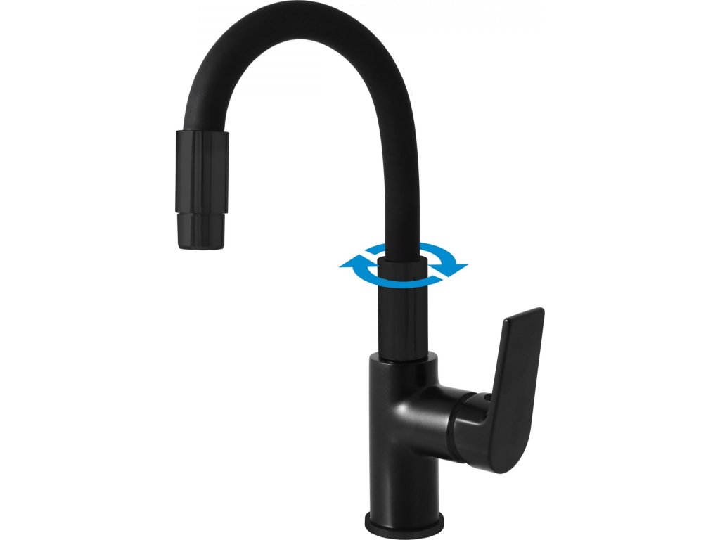 Vodovodní baterie umyvadlová stojánková s flexibilním otočným ramínkem.