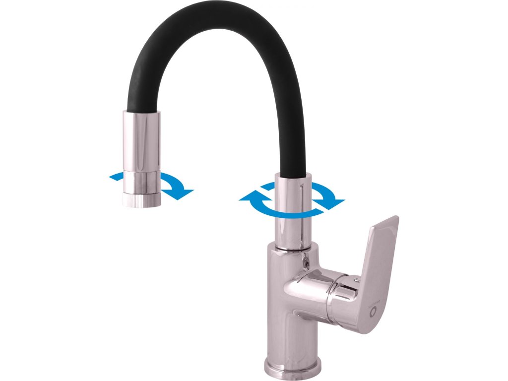 Vodovodní baterie umyvadlová stojánková s flexibilním otočným ramínkem s dvoupolohovým perlátorem.