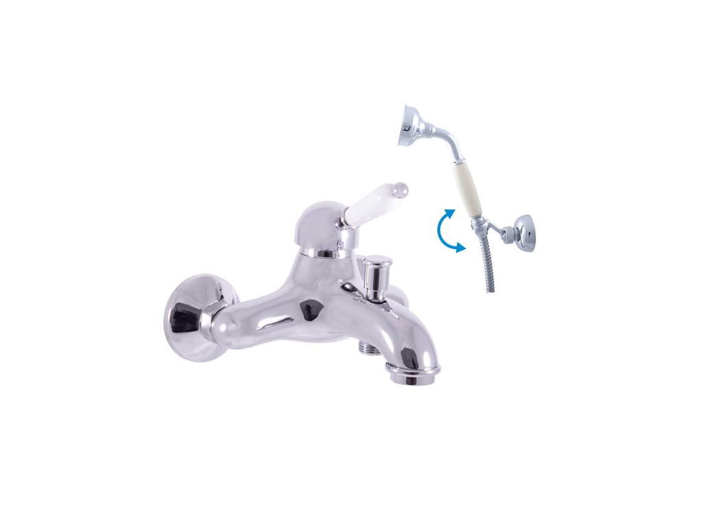 Vodovodní baterie vanová nástěnná se sprchou a otočným držákem.