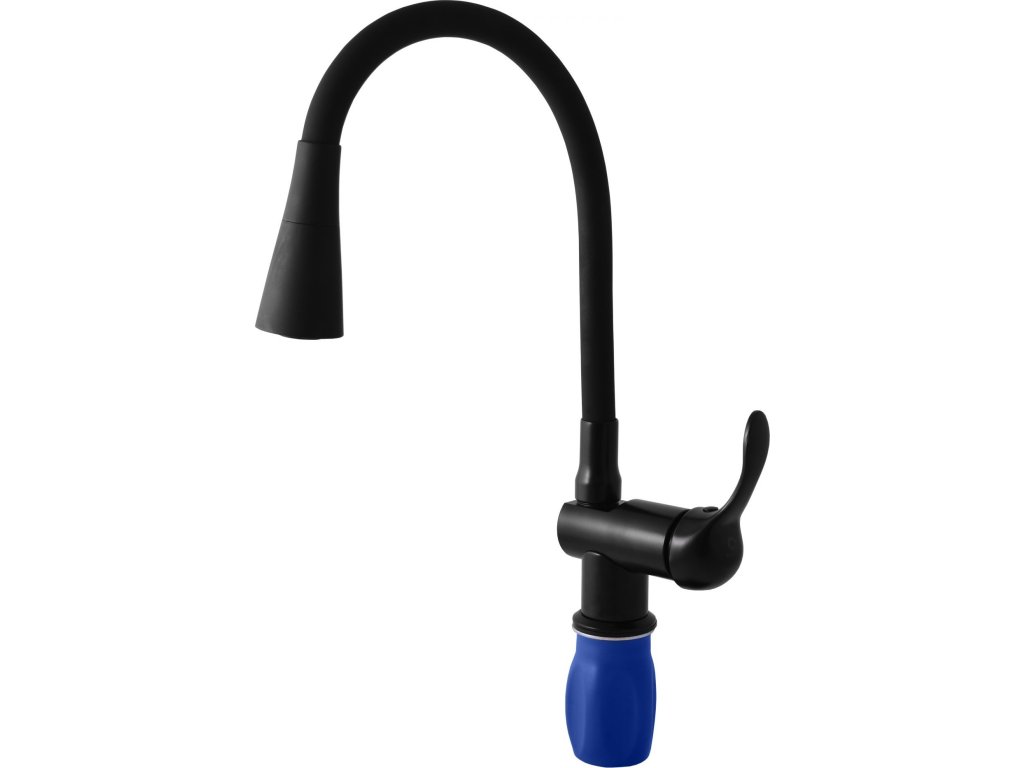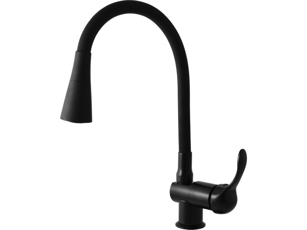 Vodovodní baterie dřezová stojánková s flexibilním ramínkem se sprchou - černá matná.