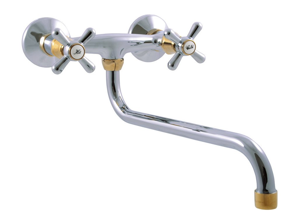 Vodovodní baterie dřezová/umyvadlová nástěnná s kulatým ramínkem 180 mm.