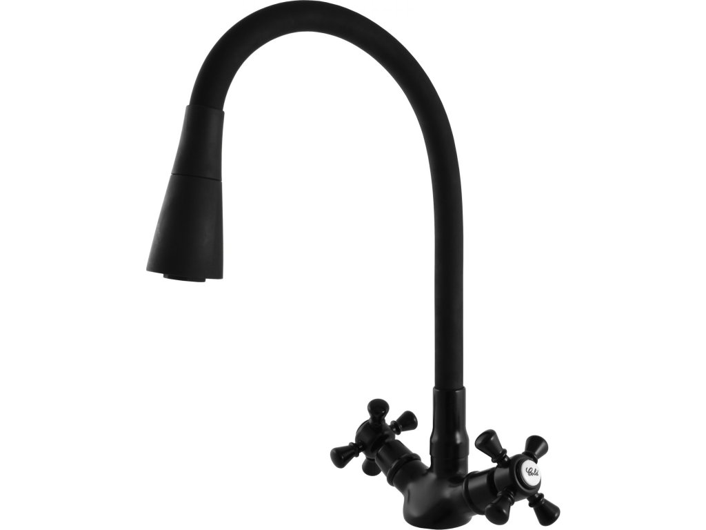 SLEZÁK RAV MORAVA RETRO - Umyvadlová/dřezová baterie s flexibilním ramínkem bez výpusti, Černá - matná MK320.0/13CMAT - 3,8"