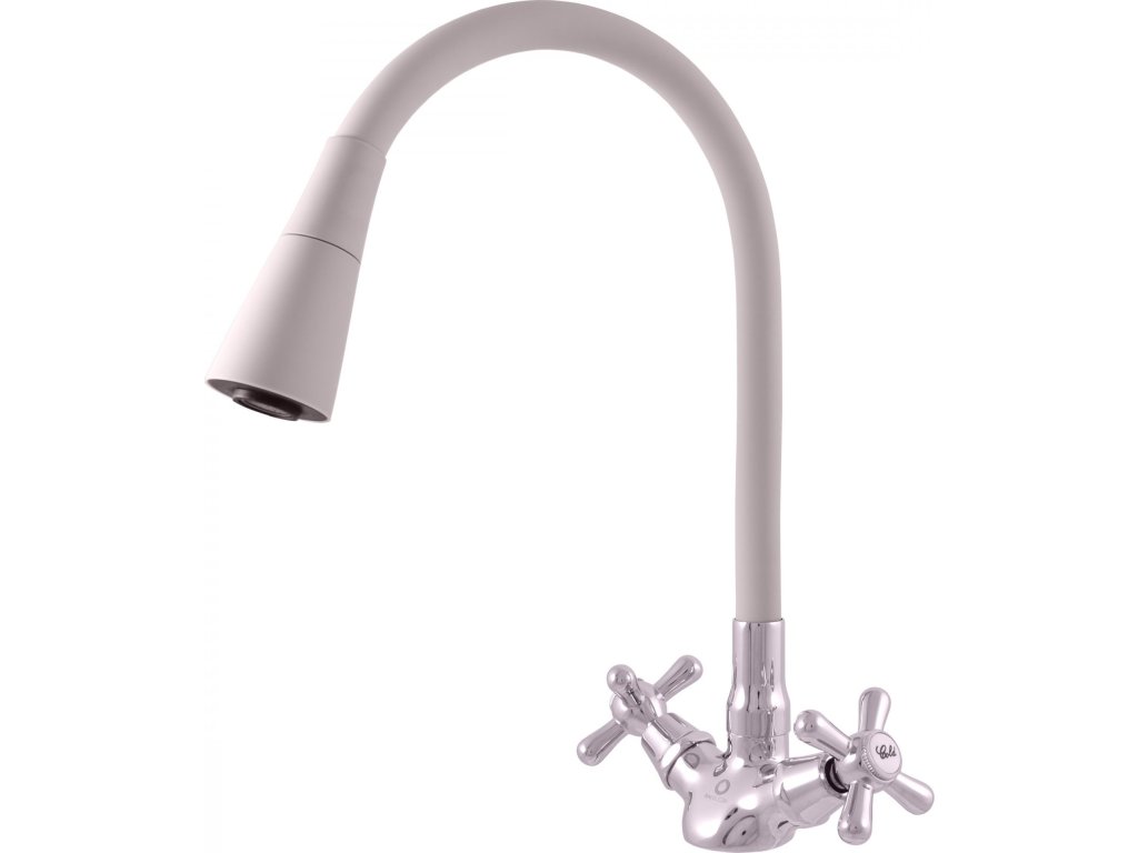 Vodovodní baterie dřezová stojánková s flexibilním otočným ramínkem se sprchou.