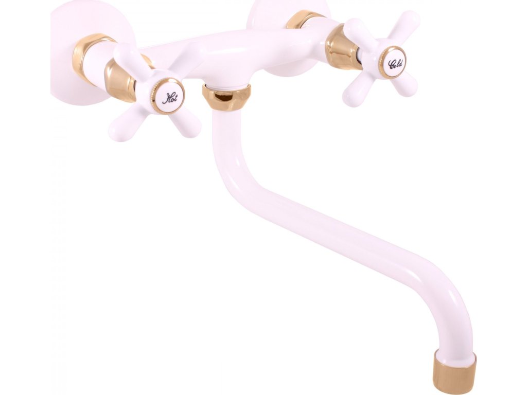 Vodovodní baterie dřezová/umyvadlová nástěnná s kulatým ramínkem.