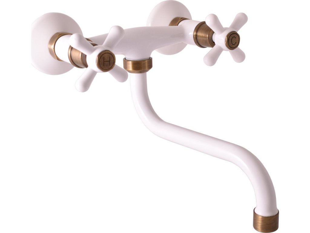 SLEZÁK RAV MORAVA RETRO - Umyvadlová/dřezová Baterie, Bílá/Stará mosaz (Bronz) MK101.5/21BSM - 150 mm