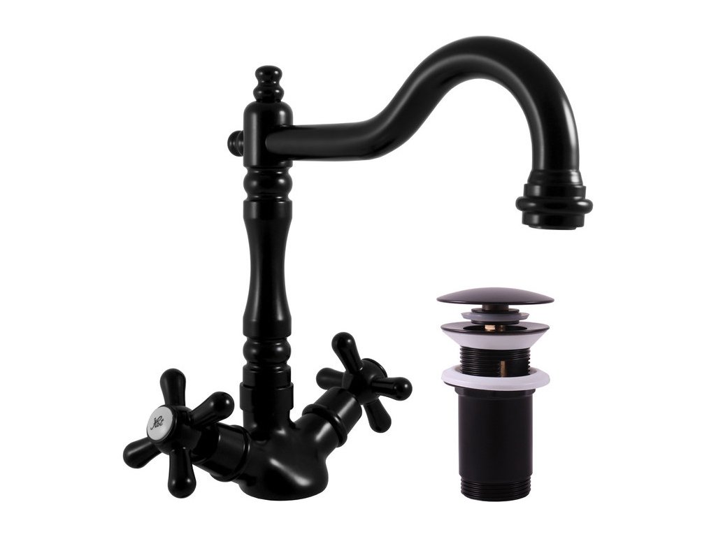 SLEZÁK RAV MORAVA RETRO - Umyvadlová baterie s výpustí, Černá - matná MK121.0/8CMAT - 3,8"