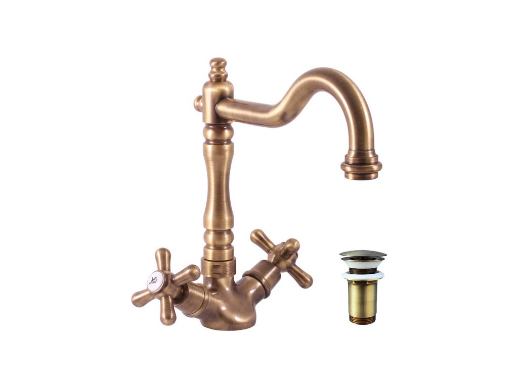 Vodovodní baterie umyvadlová stojánková s otočným ústím, včetně výpusti click-clack.