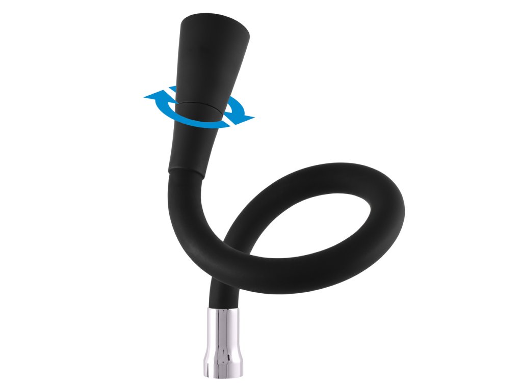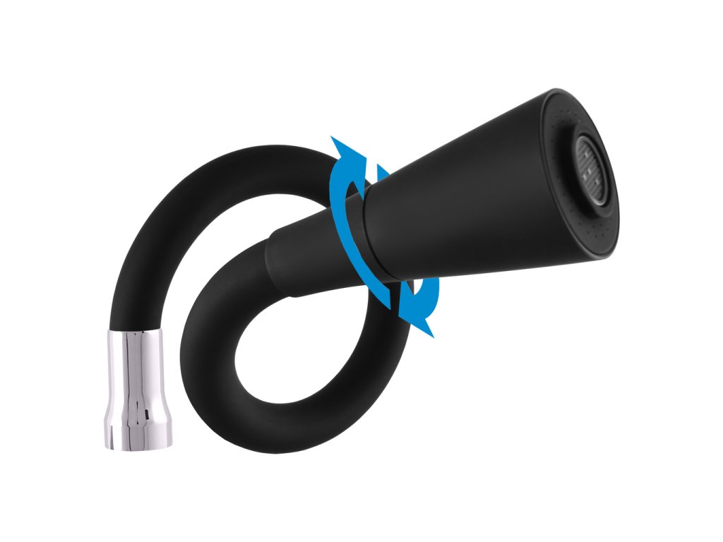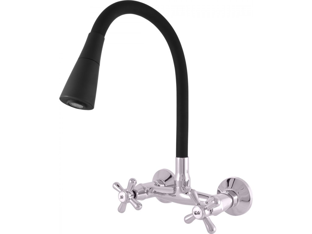 Vodovodní baterie dřezová nástěnná s flexibilním otočným ramínkem se sprchou.