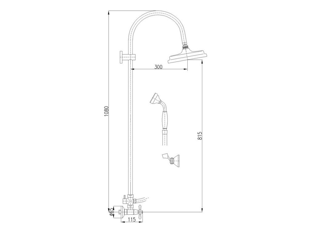 SLEZÁK RAV MORAVA RETRO - Sprchový systém s vodovodní baterií, Chrom MK181.5/3 - 150 mm