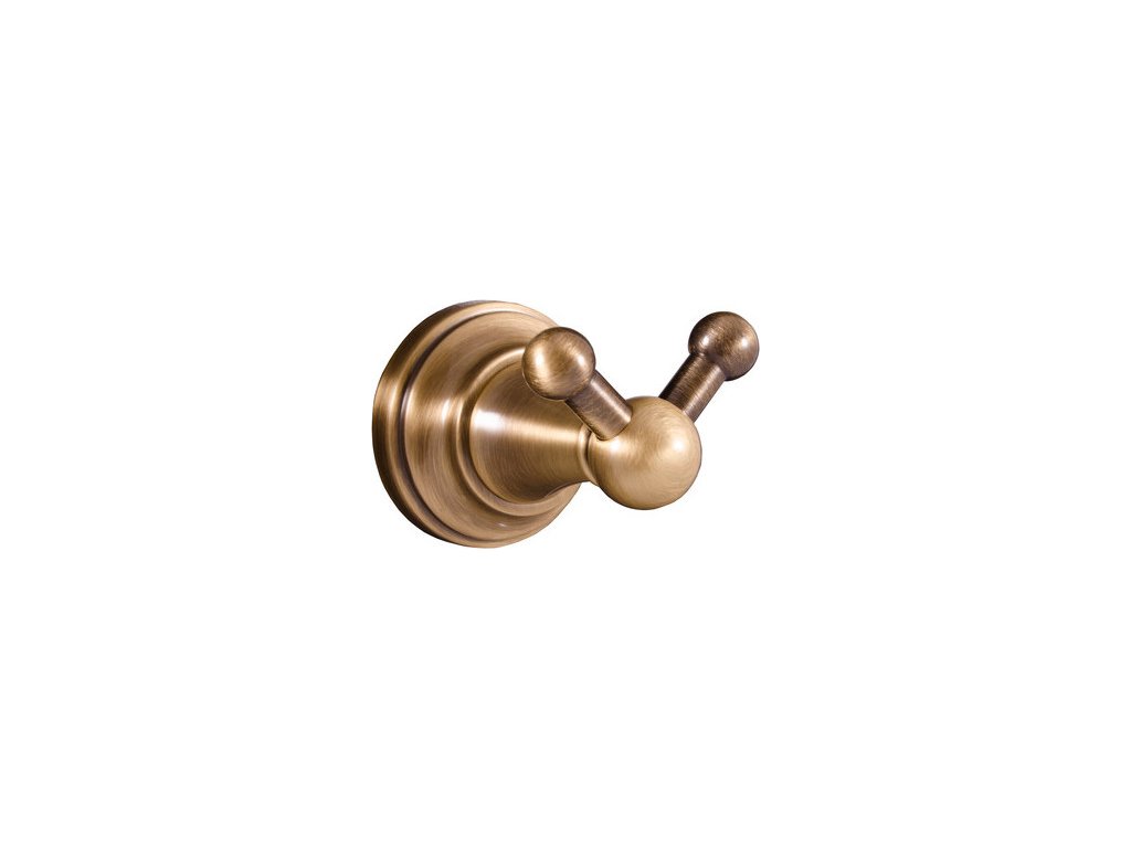 SLEZÁK RAV MORAVA RETRO - Koupelnový doplněk Věšáček dvojitý, Stará mosaz (Bronz) MKA0102SM