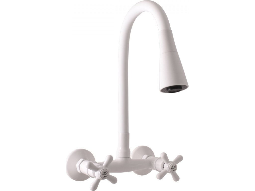 SLEZÁK RAV MORAVA RETRO - Umyvadlová/dřezová baterie s flexibilním ramínkem, Bílá - lesklá MK102.5/13B - 150 mm