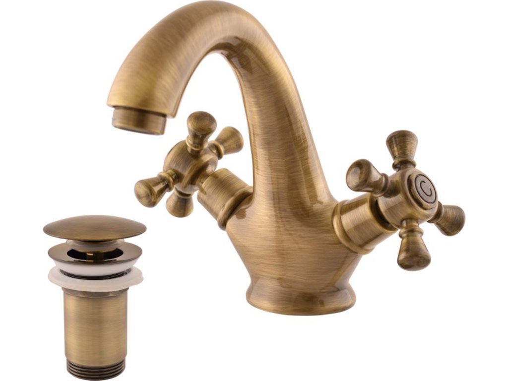 SLEZÁK RAV MORAVA RETRO - Umyvadlová baterie s výpustí, Stará mosaz (Bronz) MK329.0SM - 3,8"