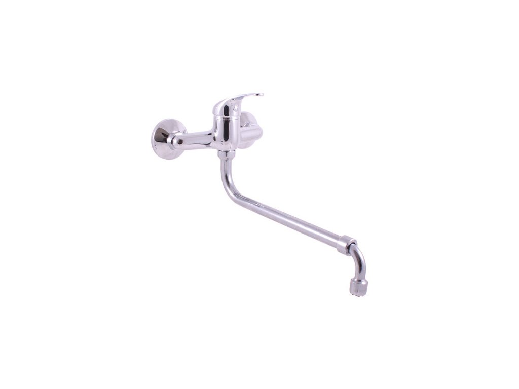 Vodovodní baterie dřezová nástěnná s kulatým teleskopickým ramínkem 290-480 mm.