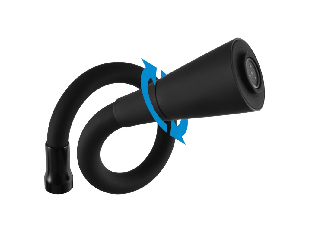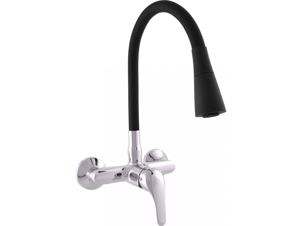 Vodovodní baterie dřezová nástěnná s flexibilním otočným ramínkem se sprchou.