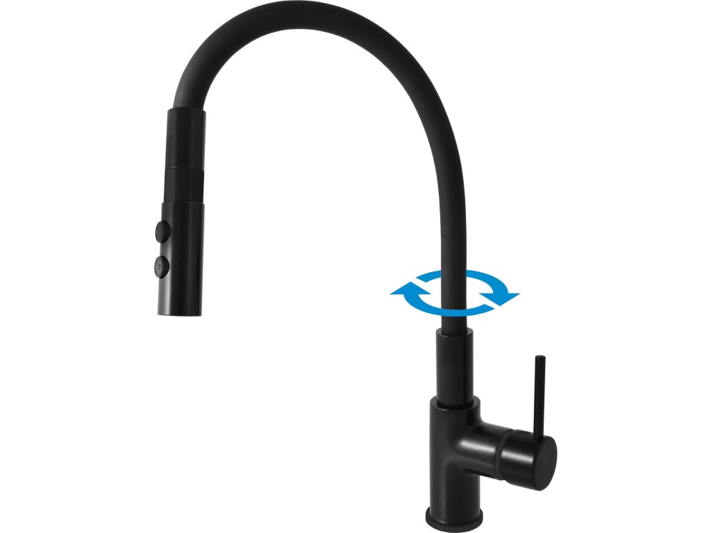 Vodovodní baterie dřezová stojánková s flexibilním otočným ramínkem se sprchou.