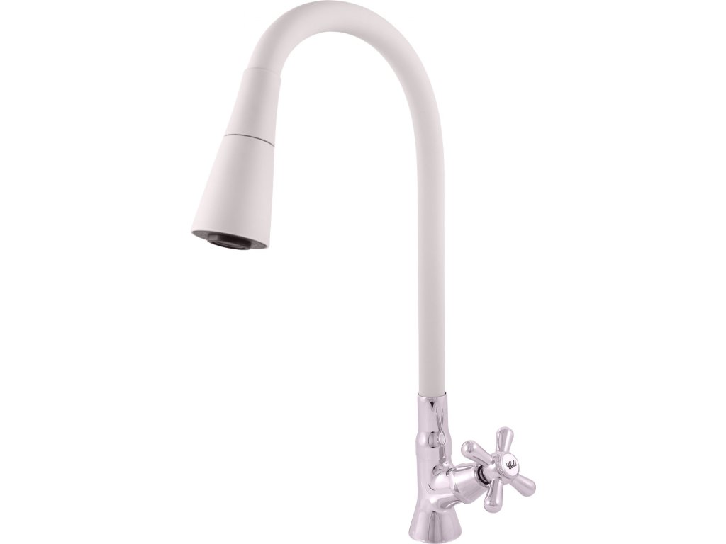 Umyvadlový ventil stojánkový na jednu vodu! s flexibilním otočným ramínkem se sprchou.
